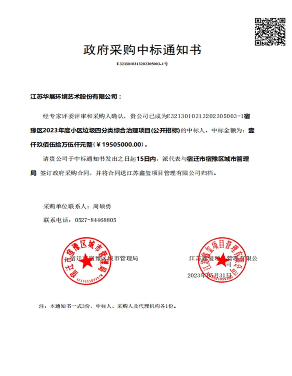 加大覆蓋面,提升基礎(chǔ)設(shè)施。江蘇華展環(huán)境藝術(shù)股份有限公司再次中標(biāo)垃圾分類項目,中標(biāo)金額:19505000元